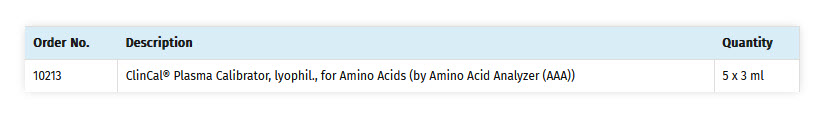 - آنالیتها شامل: آلانین، آلفا-آمینوبوتیریک اسید، آرژنین، آسپاراژین، آسپارتیک اسید، سیترولین، گلوتامیک اسید، گلوتامین، گلیسین، هیستیدین،